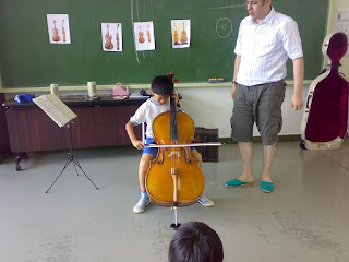 Today I taught my elementary school classes, 3rd and 4th year students. I brought my cello today, it's been getting a little dusty, so I thought it would be good to have the students see and hear a real cello up close.